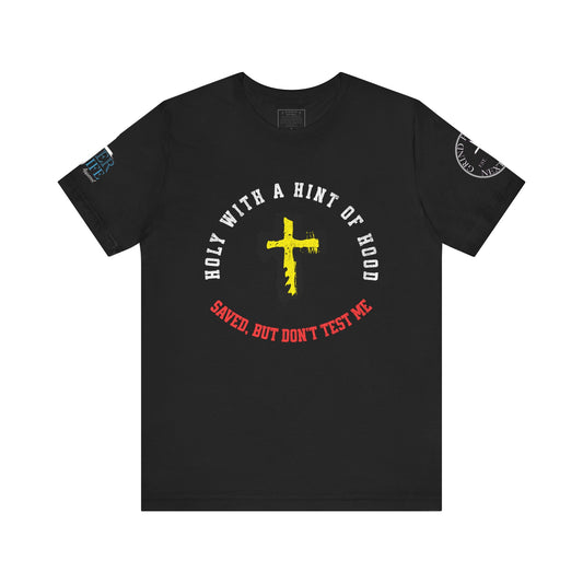 Unisex Tee - Holy with a Hint of Hood; Saved but Don't Test Me