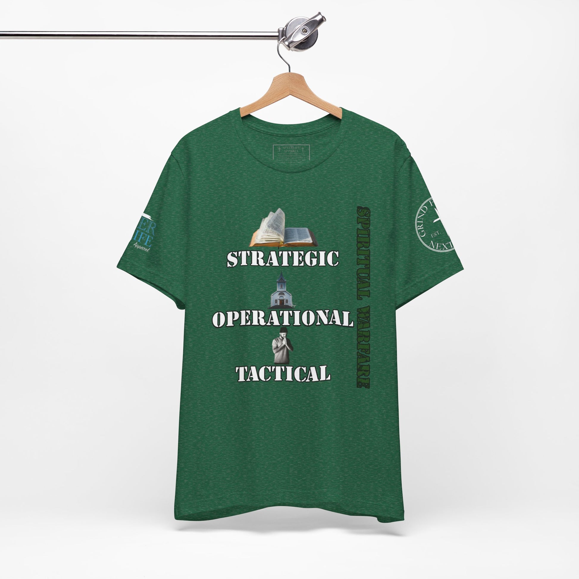 Step into the battle with purpose and faith wearing the "Spiritual Warfare Levels of Operations" t-shirtl. Designed for men who know that spiritual warfare is real, this shirt is a powerful reminder of the levels of preparation needed to stand firm in Christ.