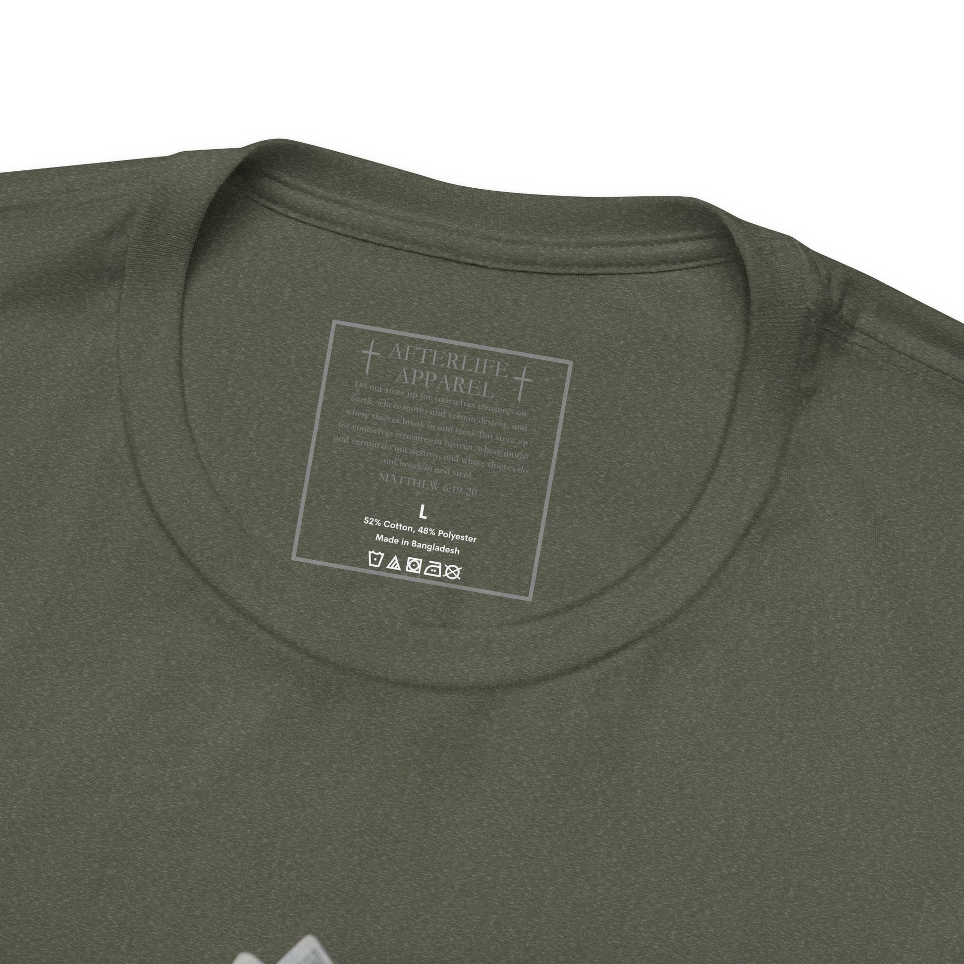 On the back tag label, you’ll find the timeless truth of Matthew 6:19-20:
